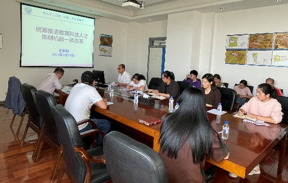 王宗明宣貫了“統(tǒng)籌推進(jìn)教育科技人才體制機(jī)制一體改革”舉措,重點(diǎn)介紹了深化教育綜合改革、成果轉(zhuǎn)化、人才流動(dòng)與評價(jià)、生態(tài)文明體制改革等重要內(nèi)容,并結(jié)合所情分析,鼓勵(lì)與會(huì)黨員明確努力方向,聚焦主責(zé)主業(yè),在搶占科技制高點(diǎn)中發(fā)揮黨員先鋒模范作用。